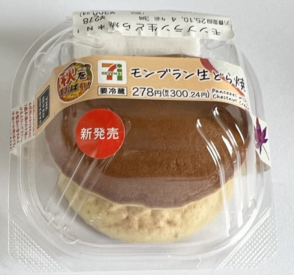 開封した瞬間に栗の香りが強く、どら皮のふんわり感も良い。クリームは軽めだが味はしっかりとモンブラン。口に運ぶと和の生地と洋のクリームが自然に馴染む。サイズはコンパクトだが満足度は高く、“コーヒーと一緒に食べるとさらに引き立つ”タイプ。